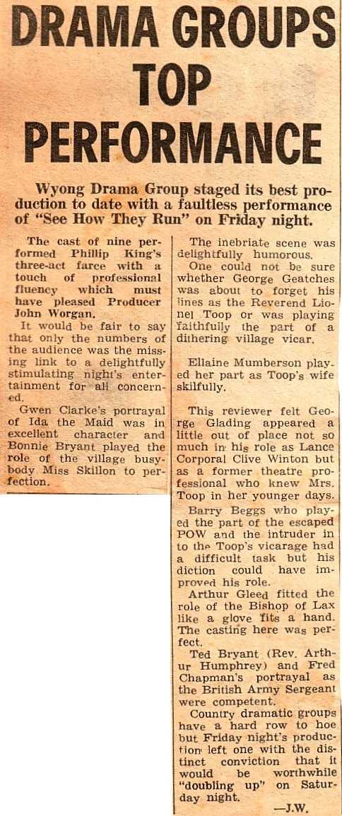 Review by Neville Goldsworthy: Wyong Advocate Wednesday, 11 December 1963