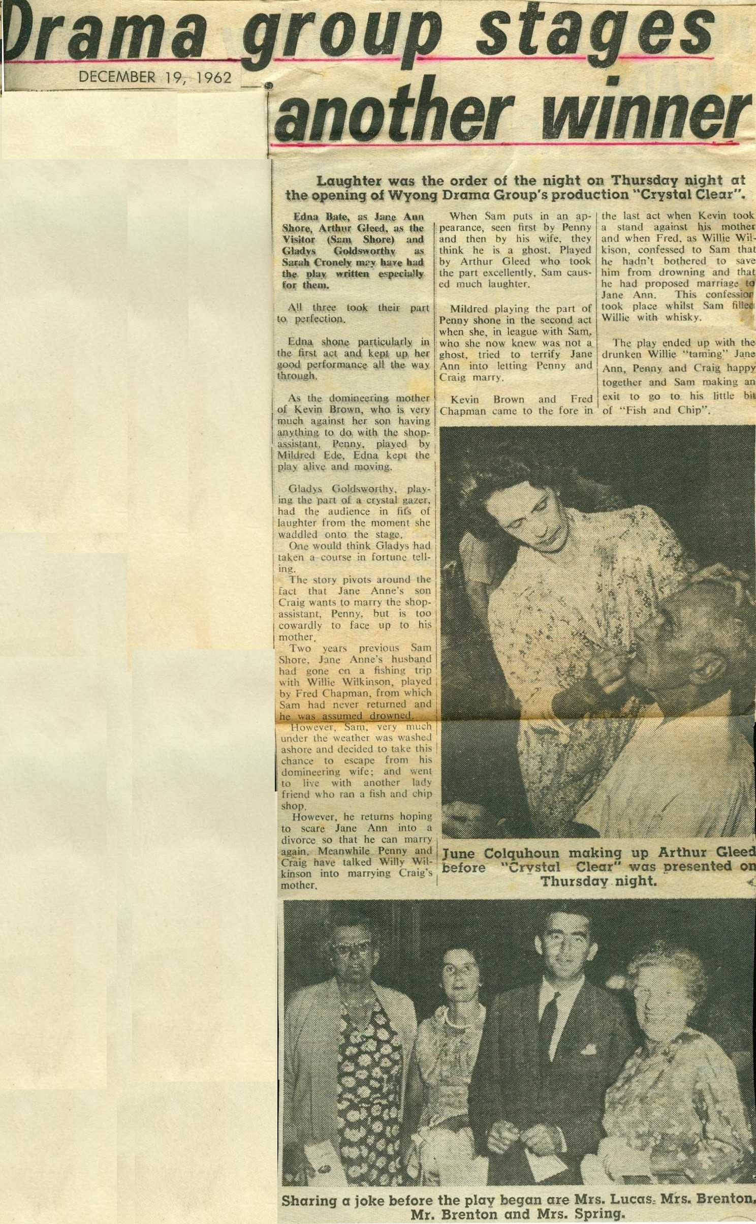 Article in the Wyong & Tuggerah Lakes News, Wednesday 19 December 1962.