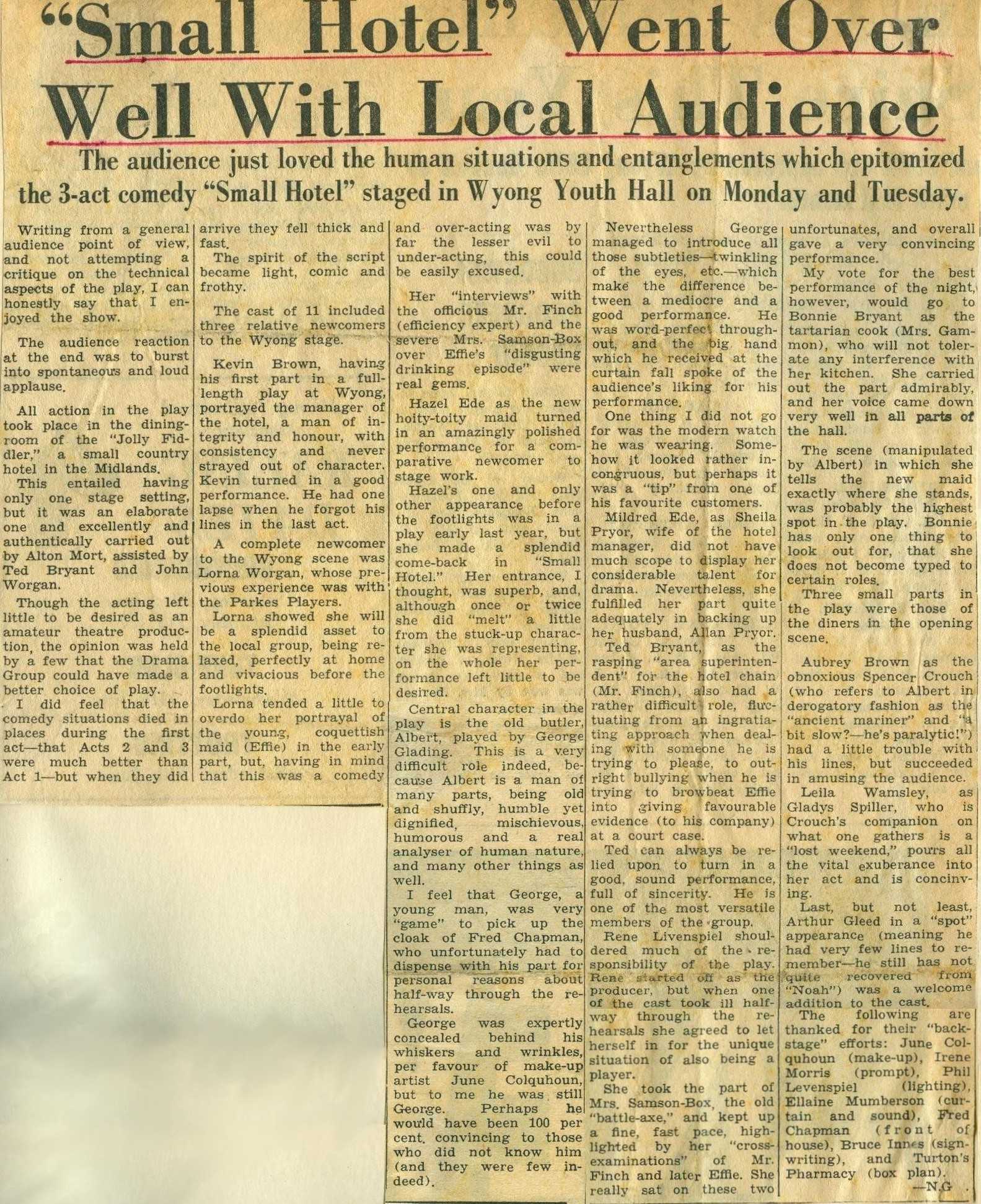 Review by Neville Goldsworthy in the Wyong (& Lakes District) Advocate on Wednesday 3 July 1963.