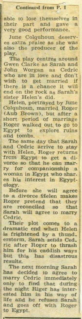 This one contains a very frank review of the play along with the picture. A classic quote: One could not be sure whether George Geatches was about to forget his lines as the Reverend Lionel Toop or was playing faithfully the part of a dithering village vicar.