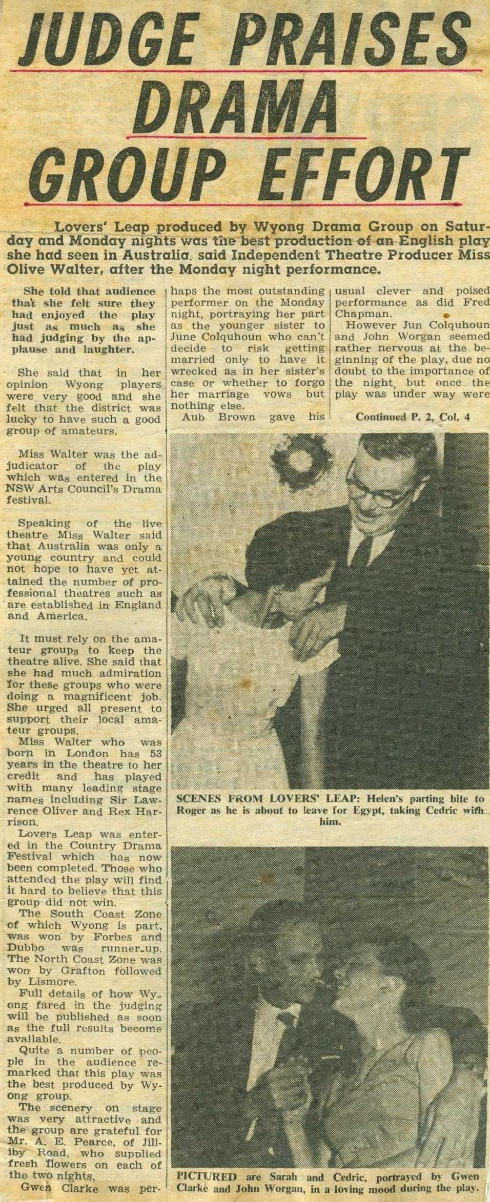 Photo to accompany "JW's" review in the Tuggerah Lakes News, Wednesday 3 July 1963.
