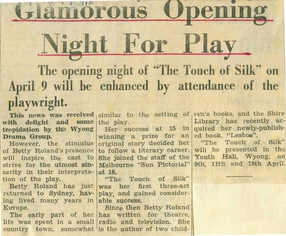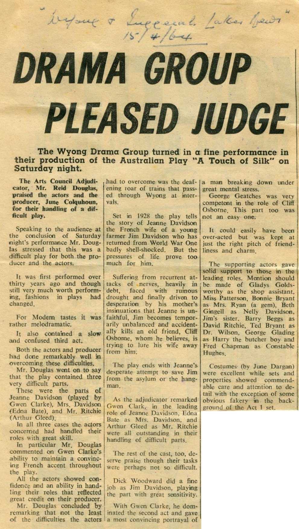 Review by Neville Goldsworthy in the Wyong Advocate, Wednesday 14 June 1966.