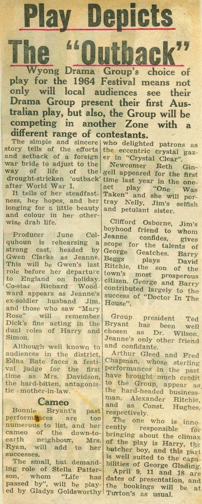 Article from the Wyong Advocate, probably Wednesday 25 March 1964