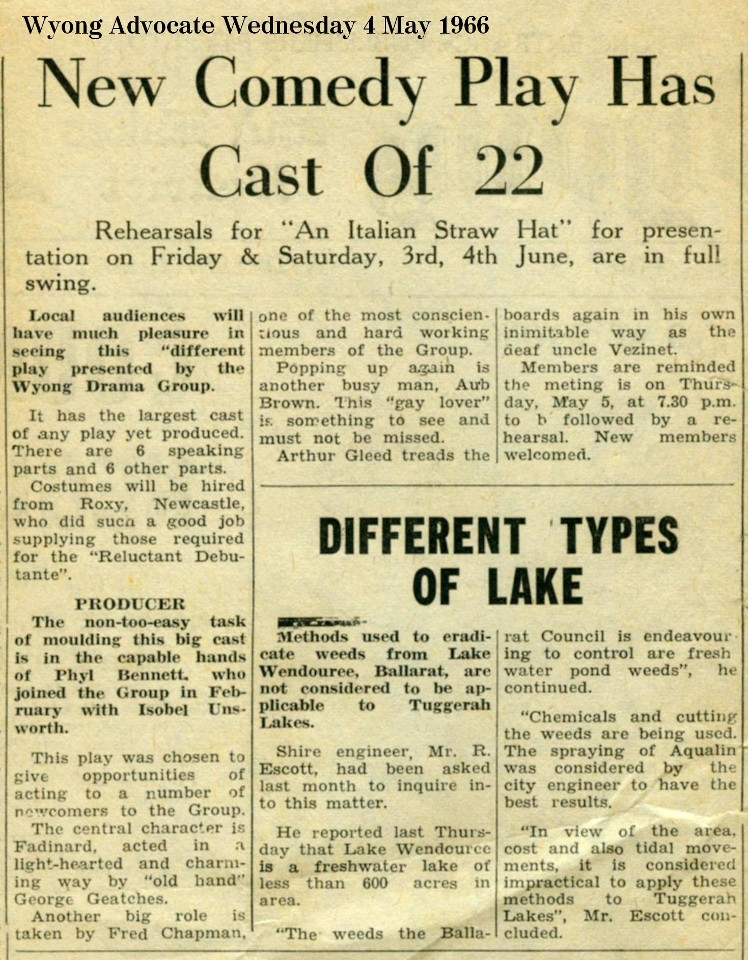 Publicity article in the Wyong Advocate, Wednesday 4 May 1966.