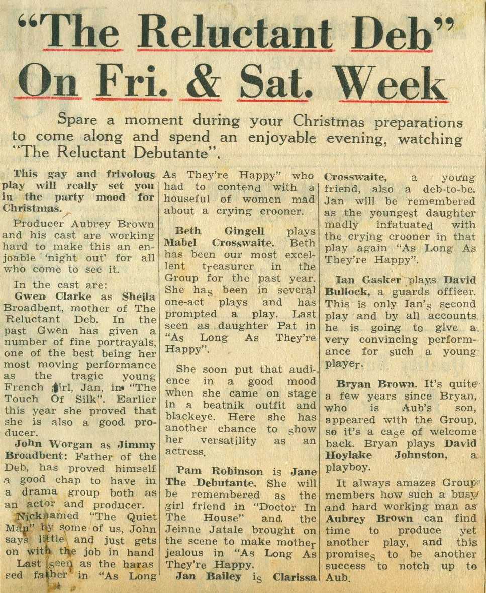 Arthur Gleed is a name familiar to most WDG audiences from the early days throughout the 1960s, having appeared in countless plays. With this production he turned his hand to directing (and it is to be noted he never directed another show for Wyong Drama Group!)